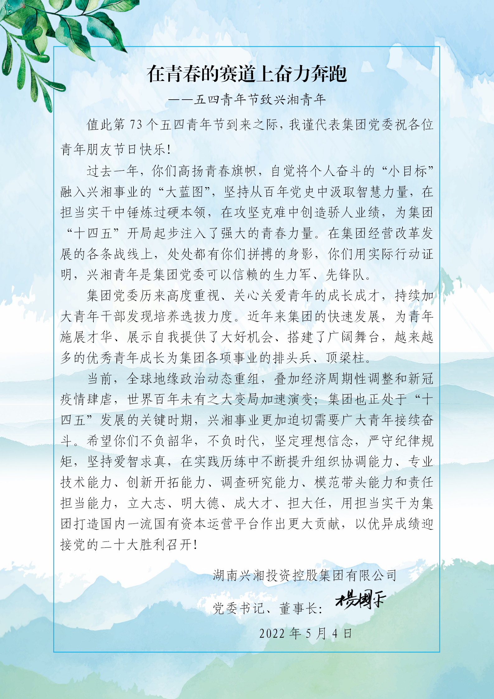 在青春的賽道上奮力奔跑 ——五四青年節致興湘青年