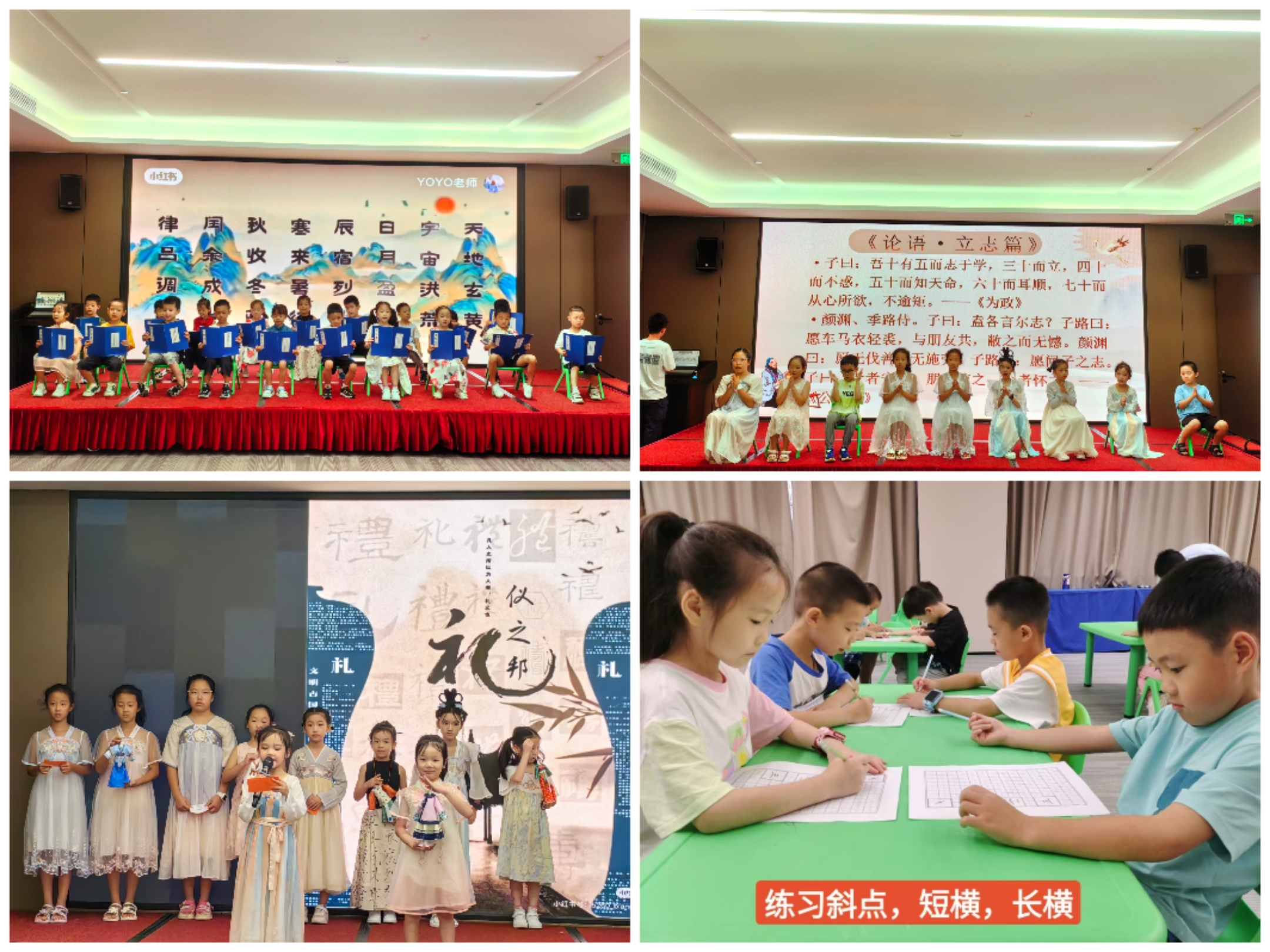 結業典禮上,孩子們朗誦了國學經典《千字文》《論語篇》,表演了舞蹈《上春山》《三德歌》等,家長代表及托管老師為孩子們頒發了榮譽證書。