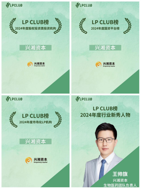 此前,在LP CLUB·2024年度峰會上,興湘資本榮登2024年度股權投資類投資機構TOP40、2024年度國資平臺榜TOP40、2024年度市場化LP機構TOP10;興湘資本醫(yī)藥健康團隊負責人王帥旗榮登2024年度行業(yè)新秀人物TOP10。