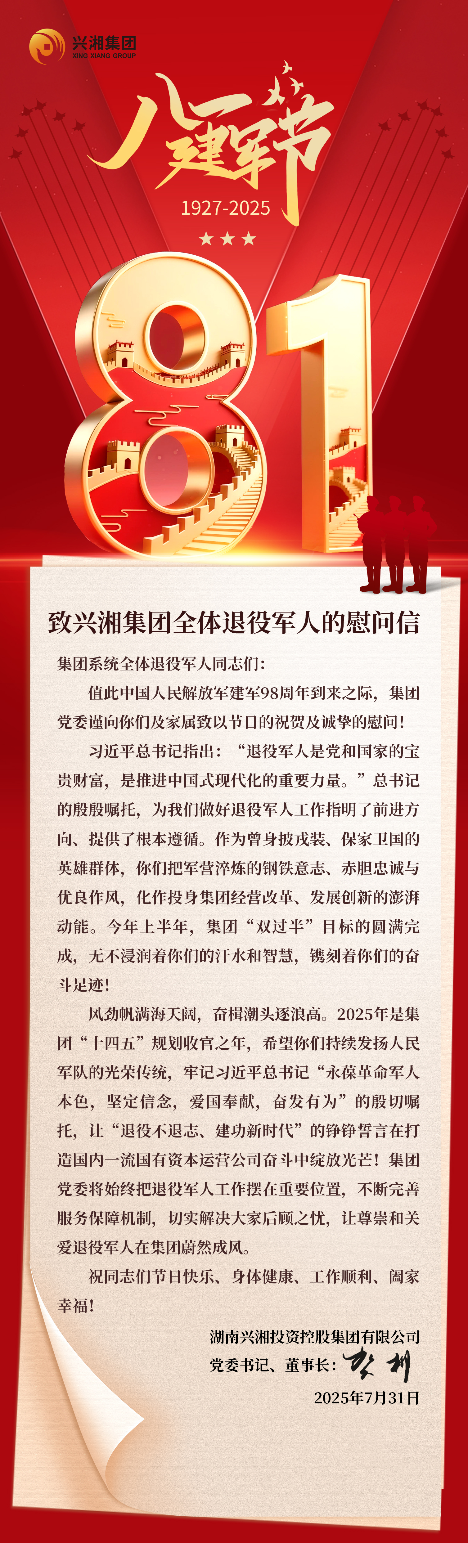致集團全體退役軍人的慰問信