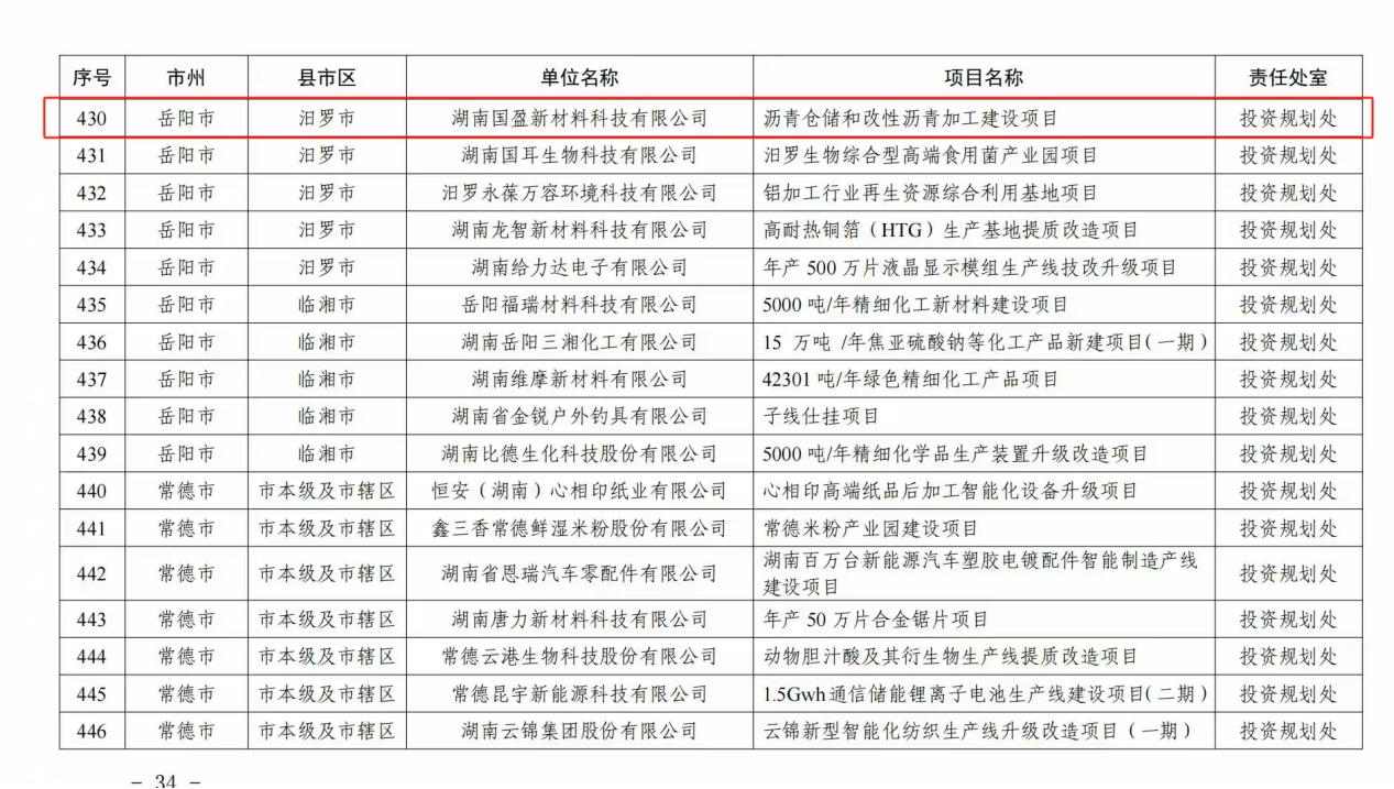近日,湖南省財政廳、省工信廳公示了2025年省先進制造業高地建設專項資金擬支持項目名單,公路物資子公司國盈新材瀝青倉儲和改性瀝青加工建設項目成功入選。