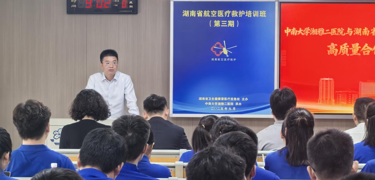 9月28日,“湖南省第三期航空醫療救護培訓班暨中南大學湘雅二醫院與湖南低空經濟發展集團有限公司合作會議”舉行。省低空經濟工作專班辦公室主任葛曉峰,省應急廳航空應急救援中心副主任賀思,湘雅二醫院黨委書記柴湘平、副院長肖揚,湖南低空黨委書記、董事長、總經理劉斌,湘雅二醫院社會事務部航空醫療救護管理辦公室主任華頌文,南航通航市場總監楊東鵬等出席活動。